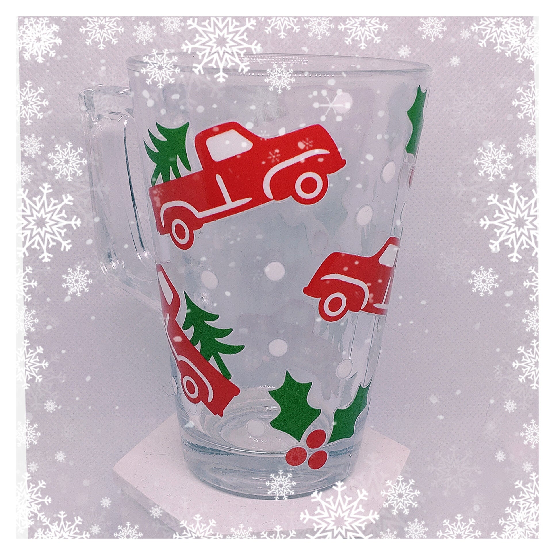 Passez des fêtes de Noël inoubliables avec notre Tasse de Noël Camionnette et sapin! Imaginez-vous, confortablement installé près de la cheminée, en train de savourer votre boisson chaude préférée dans cette magnifique tasse en verre. Sa capacité généreuse de 250 ml vous permet de profiter pleinement de vos moments de détente lors des célébrations de fin d'année.