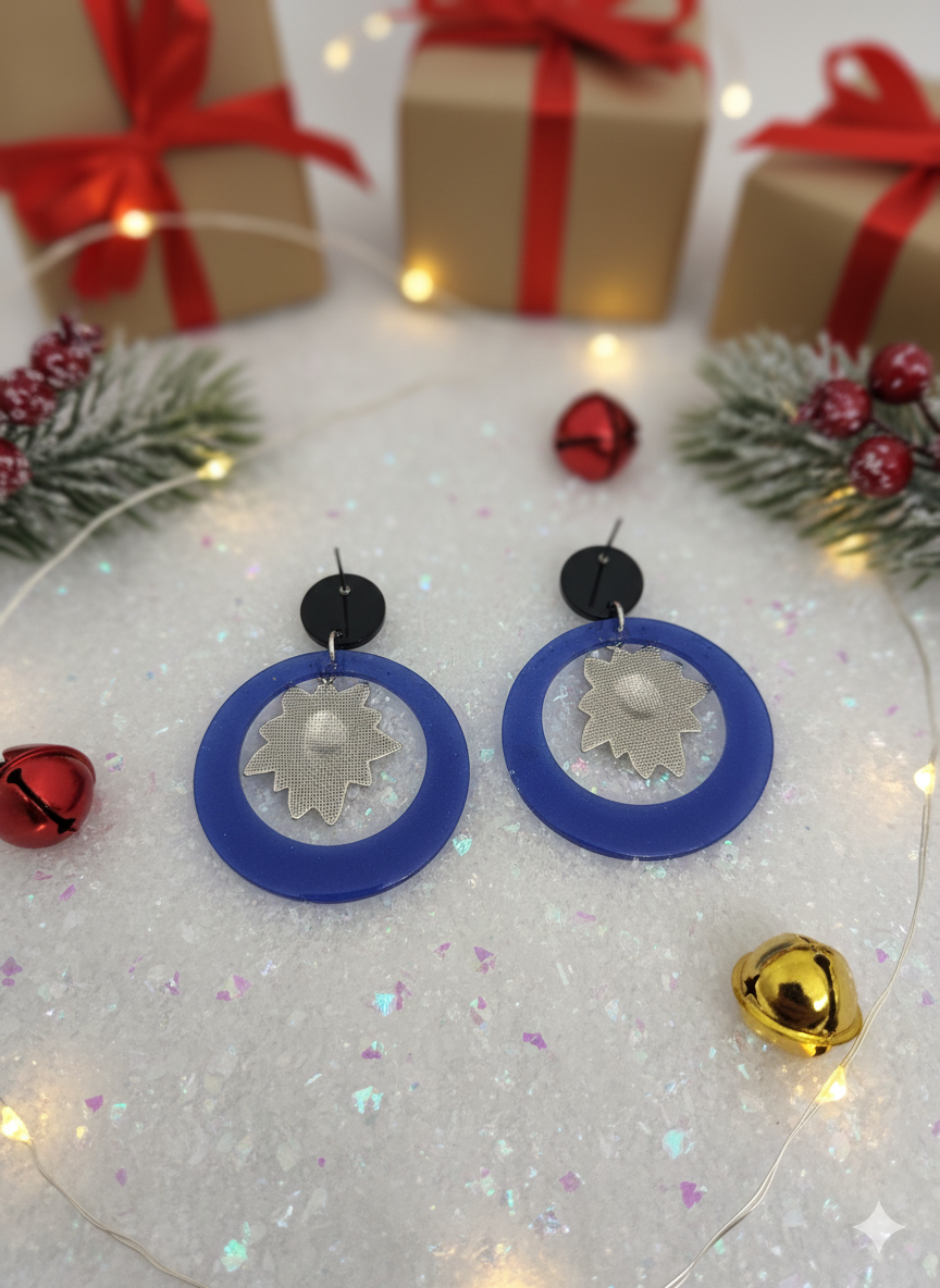 Les anneaux en résine offrent des reflets doux et chatoyants, tandis que le pendant poinsettia en alliage doré apporte une touche festive et élégante.