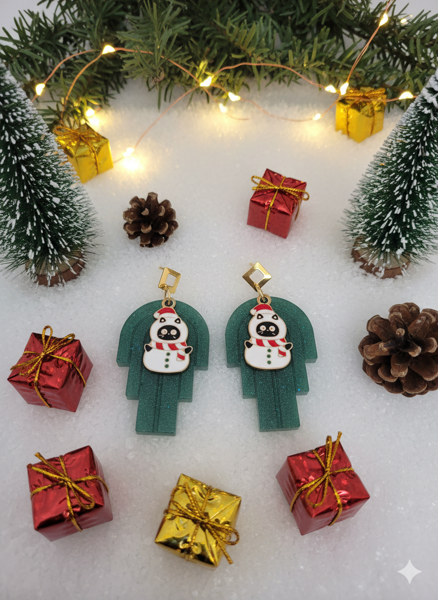 Un duo espiègle où la résine nacrée rencontre un pendant chat déguisé prêt à célébrer Noël avec style !